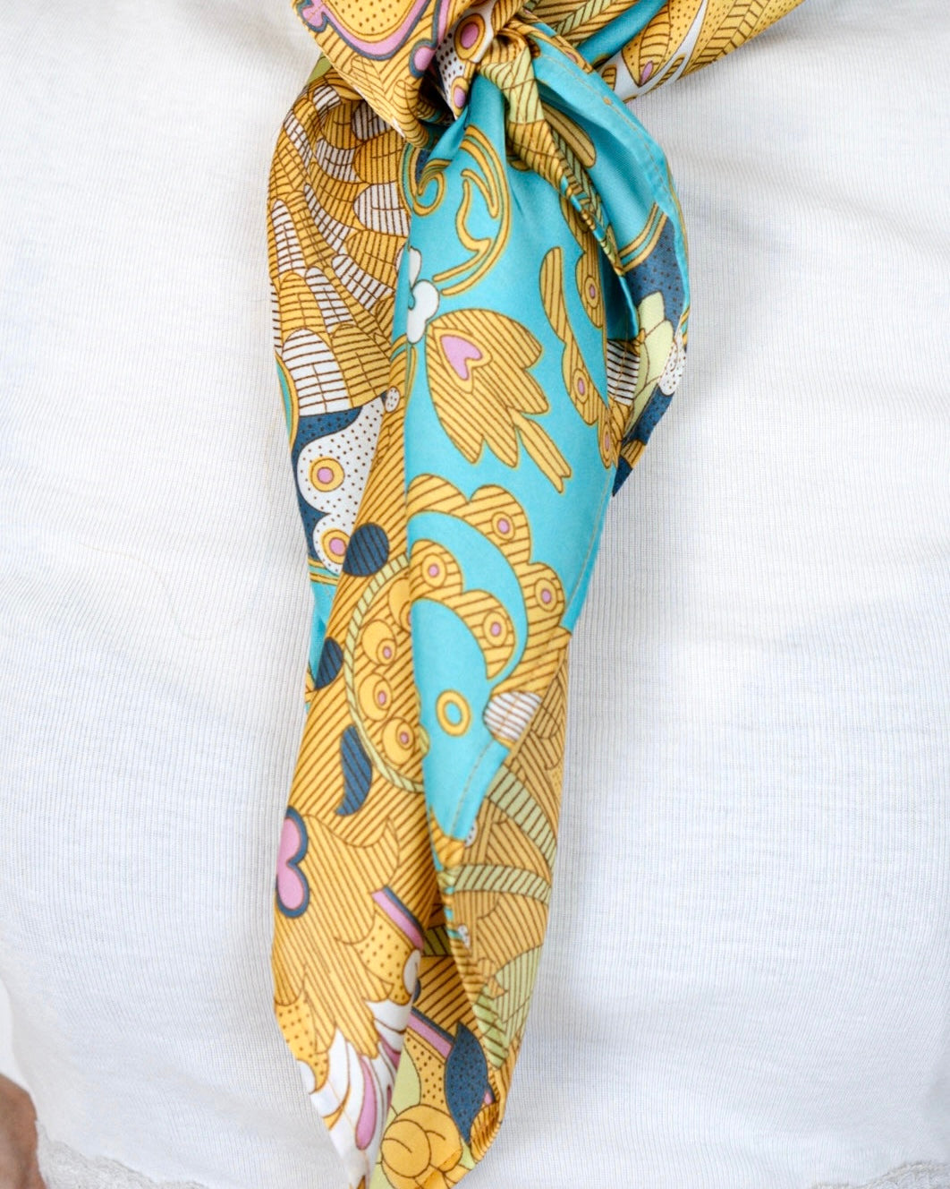 Das Tuch mit einem fein verarbeiteten Rollsaum besteht aus einem Stoff einer Überproduktion und wurde vor der Entsorgung bewahrt. Dadurch bekommt der Stoff durch MOMADE ein zweites Leben. Das Tuch ist besonders leicht, dadurch besonders angenehm zu tragen und vielseitig einsetzbar.