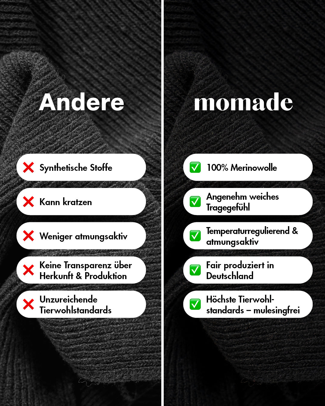 • Mulesingfreie Merinowolle