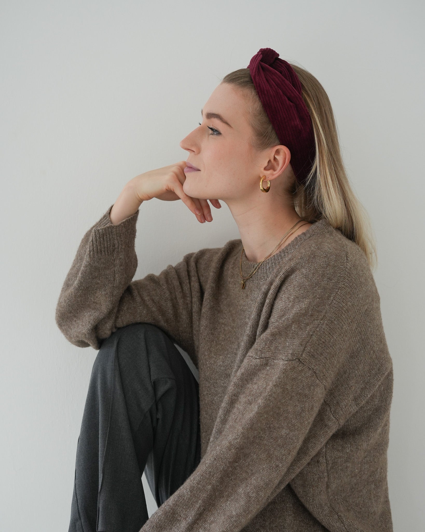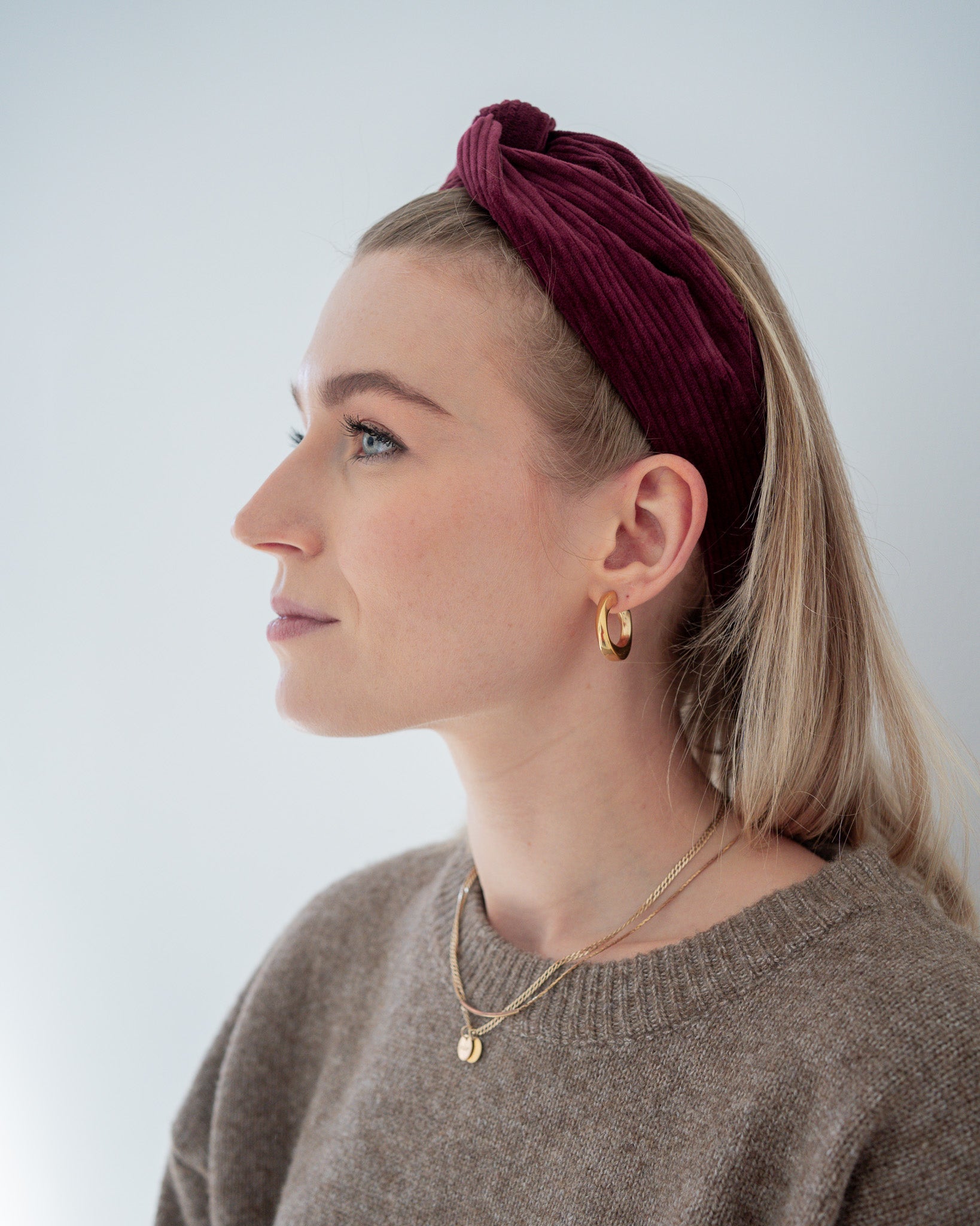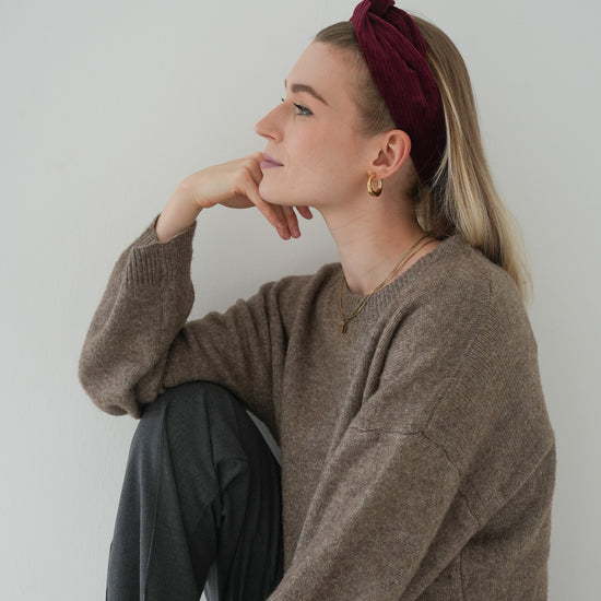 Das trendige Cord Drahthaarband fühlt sich weich an und ist für kältere Tage ein absolutes Must-Have.