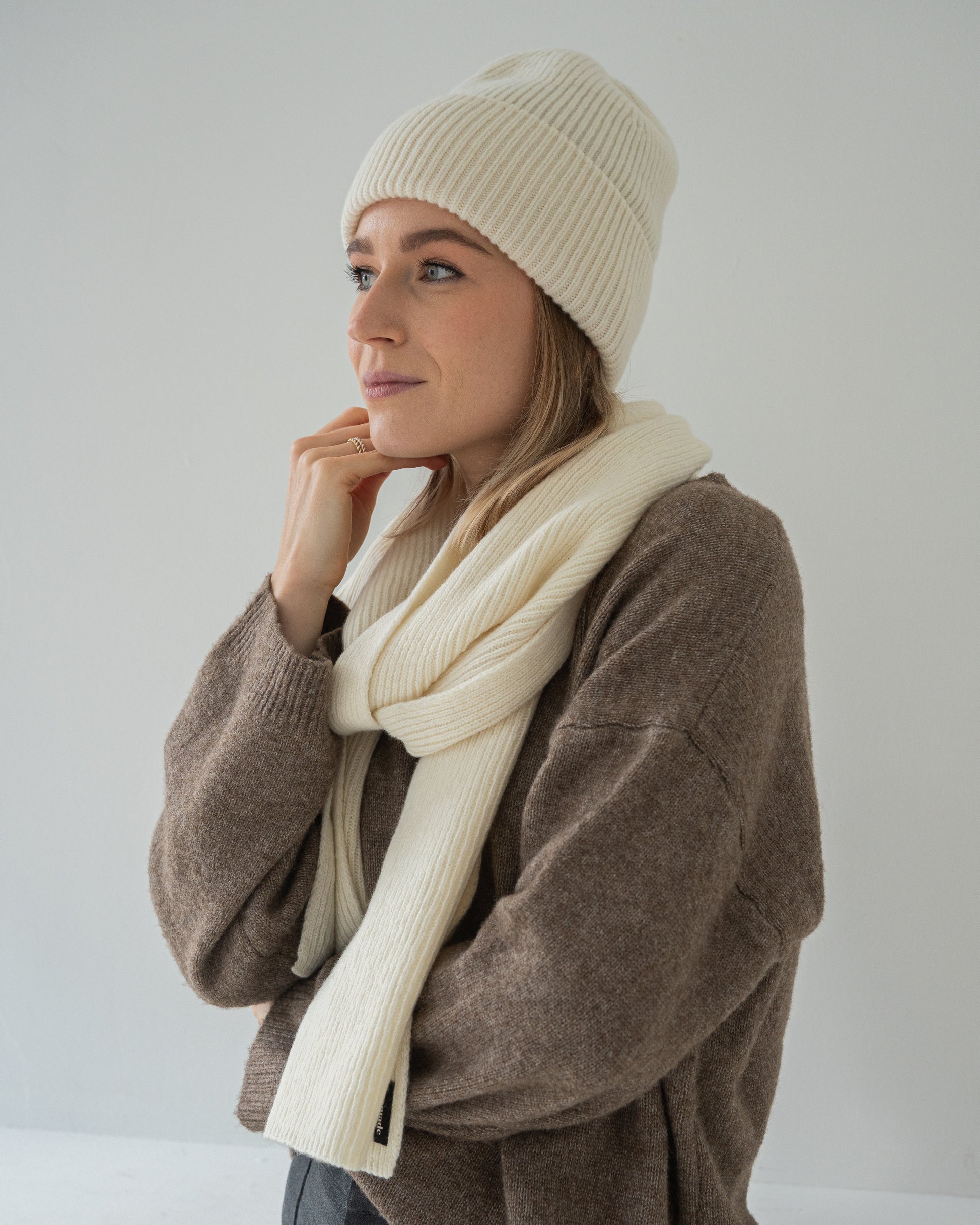 Kälte? Pff, nicht mit uns! Unser ultraweicher Schal aus 100% mulesingfreier Merinowolle hat alles: Style, Komfort und die Fähigkeit, jeden Winterlook aufzupeppen!