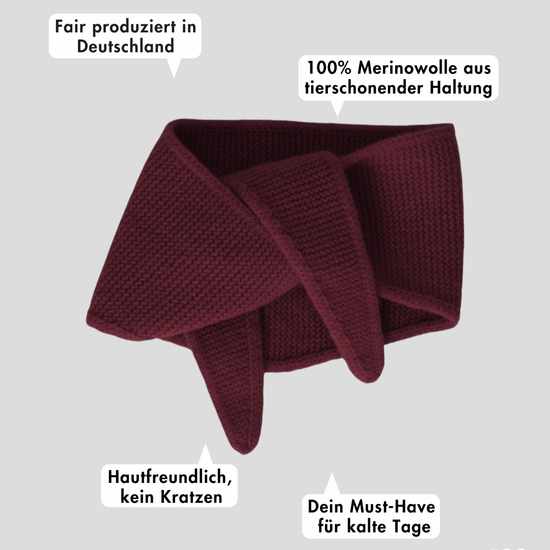 Weich, stilvoll und fair: Unser Mini Scarf aus 100% mulesingfreier Merinowolle wird in Deutschland nachhaltig gefertigt. Das Design verleiht jedem Outfit einen gewissen Touch –  egal ob casual oder chic.