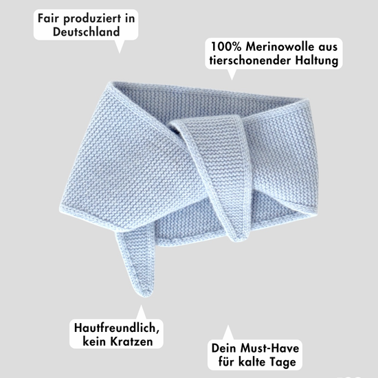 Weich, stilvoll und fair: Unser Mini Scarf aus 100% mulesingfreier Merinowolle wird in Deutschland nachhaltig gefertigt. Das Design verleiht jedem Outfit einen gewissen Touch – egal ob casual oder chic.