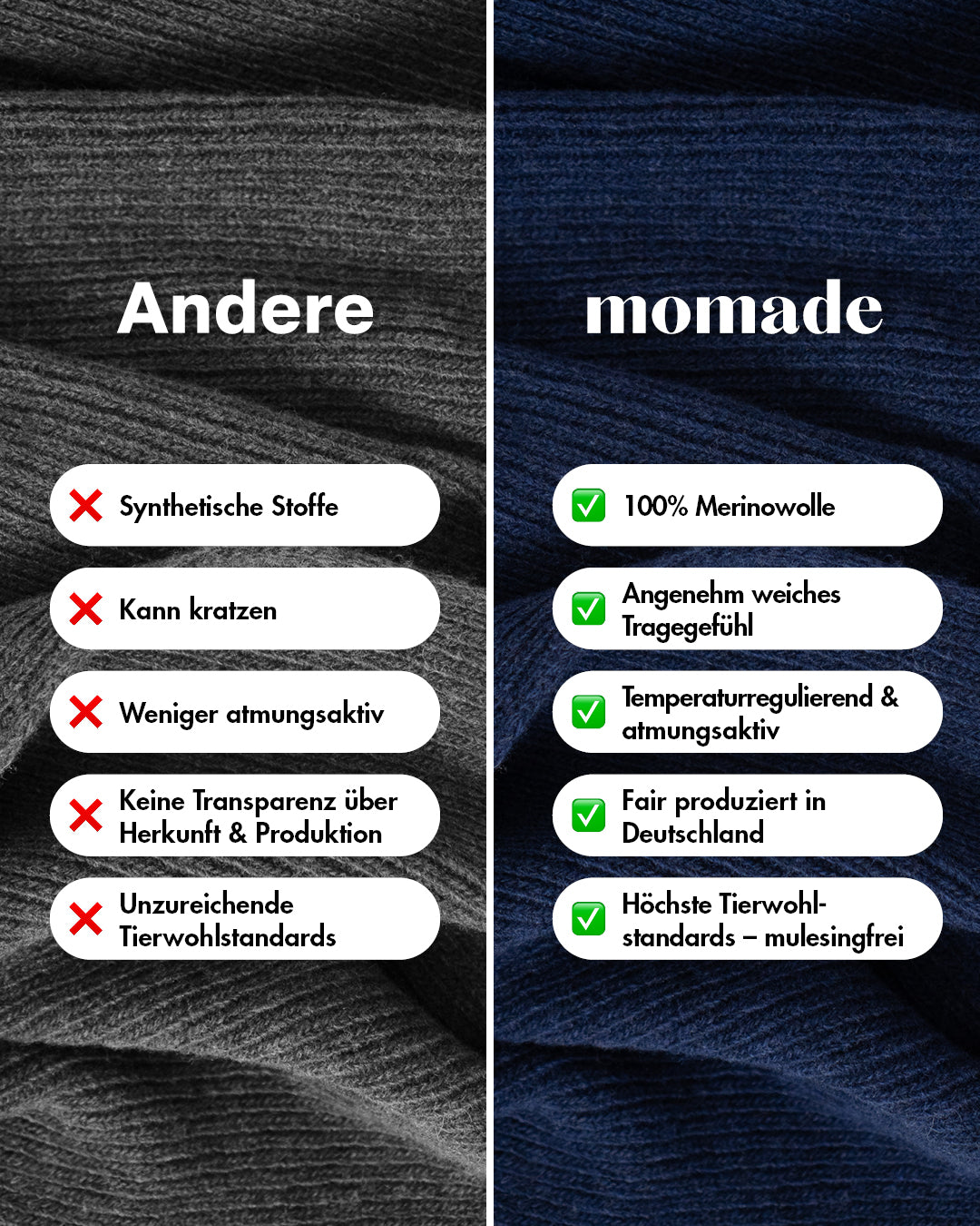• Mulesingfreie Merinowolle