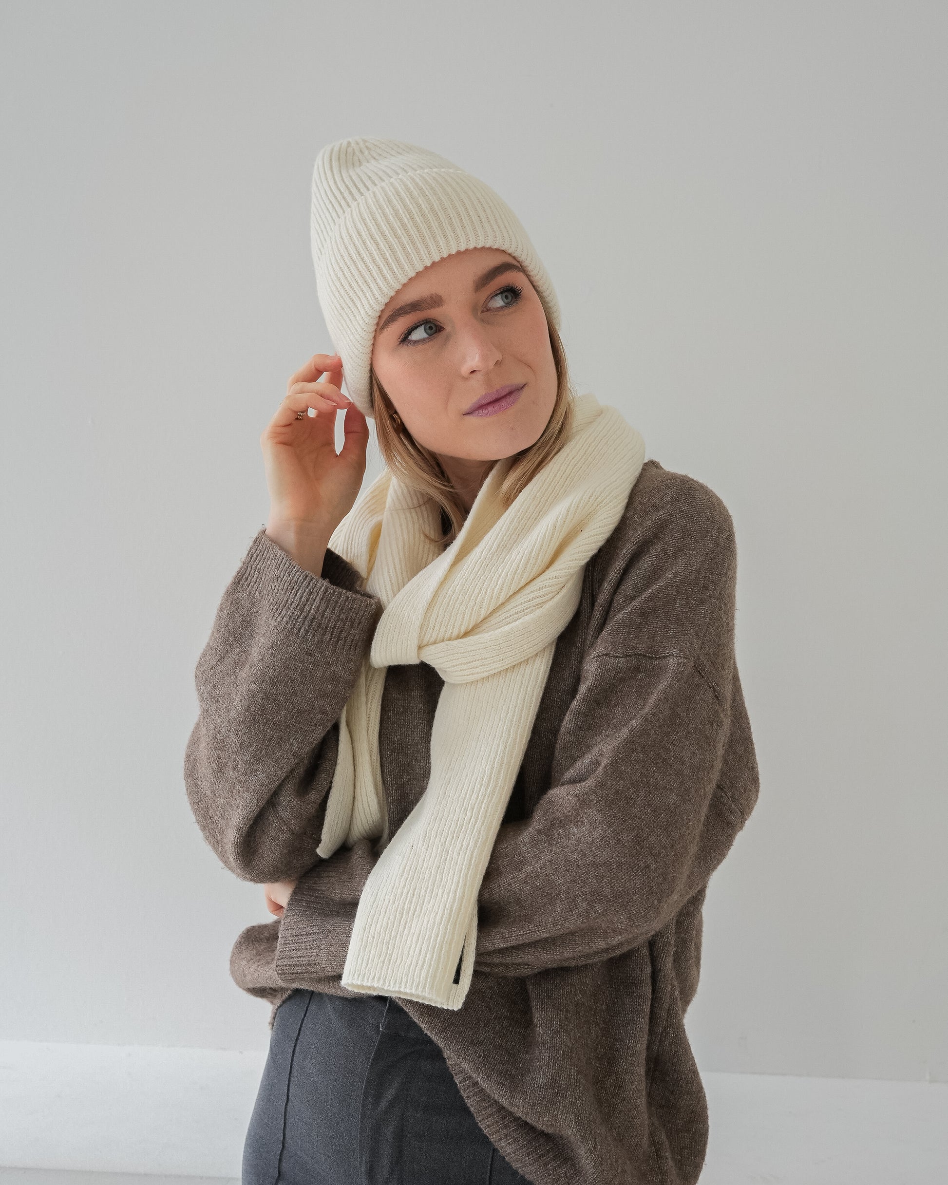 Unsere Mützen und Schals bestehen aus mulesingfreier Wolle – einer nachhaltigen Wahl für alle, die Mode mit Verantwortung tragen möchten. Diese Wolle stammt aus tierfreundlicher Haltung, bei der auf das schmerzhafte Mulesing verzichtet wird. Gleichzeitig überzeugt sie durch natürliche Eigenschaften: Sie ist biologisch abbaubar, langlebig, temperaturregulierend und besonders weich. Mit jedem unserer Produkte entscheidest du dich bewusst gegen Tierleid und für eine ressourcenschonende Alternative – für ein gutes Gefühl beim Tragen und einen positiven Beitrag zur Umwelt.