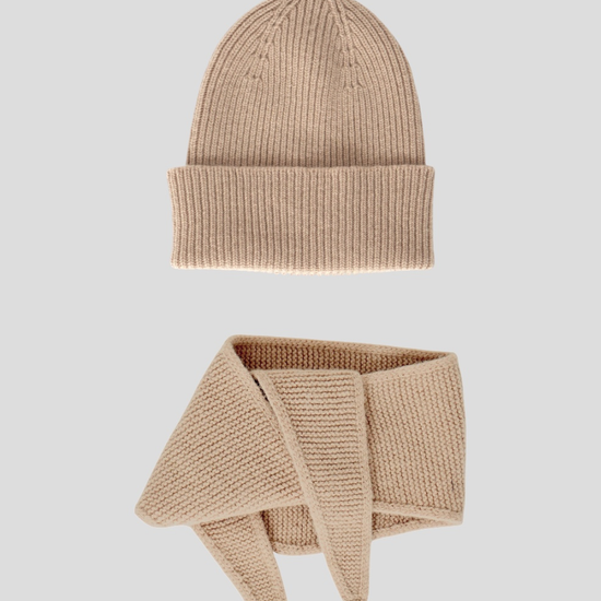Mütze und Mini Scarf aus 100 % Merinowolle
